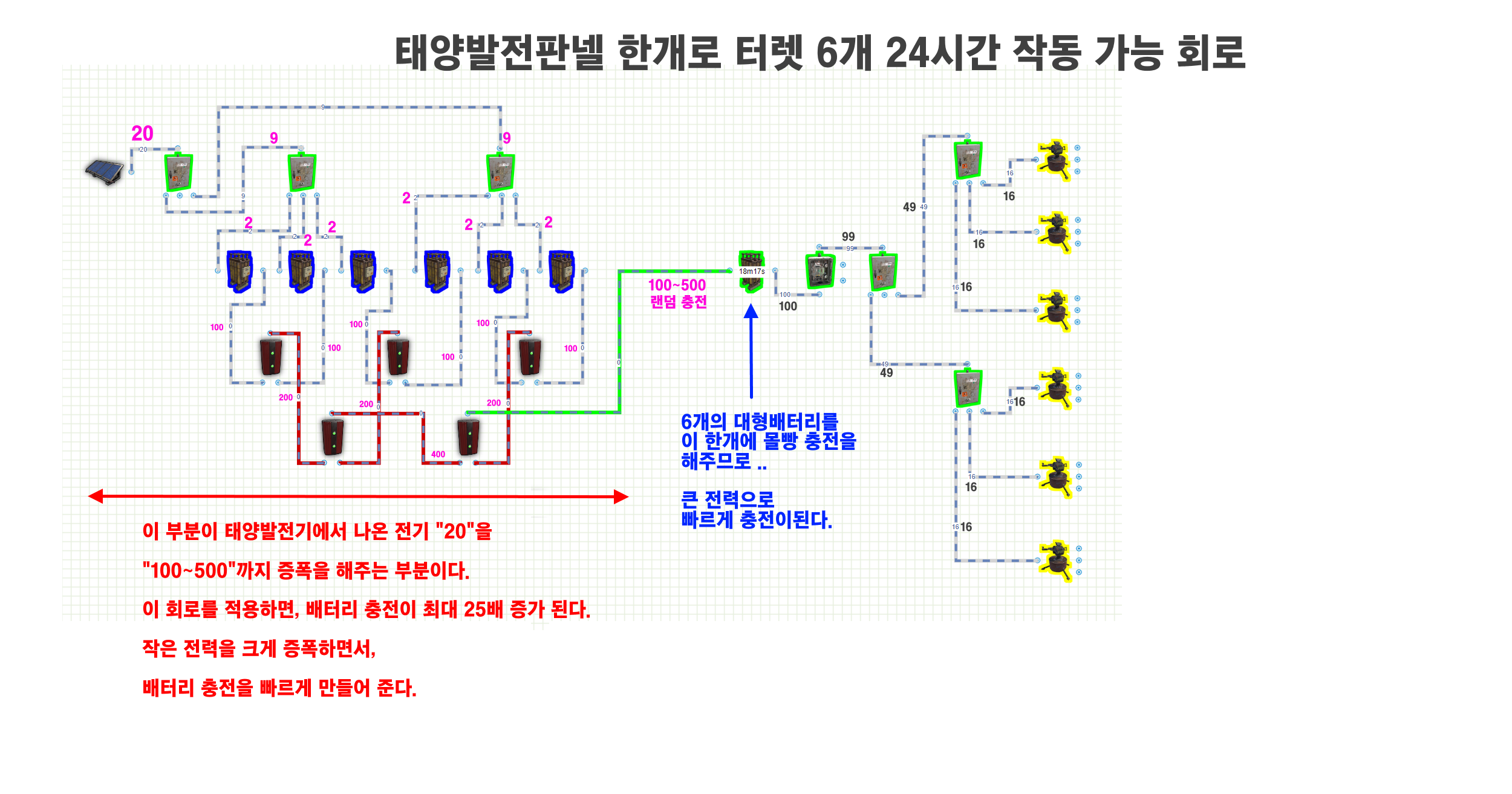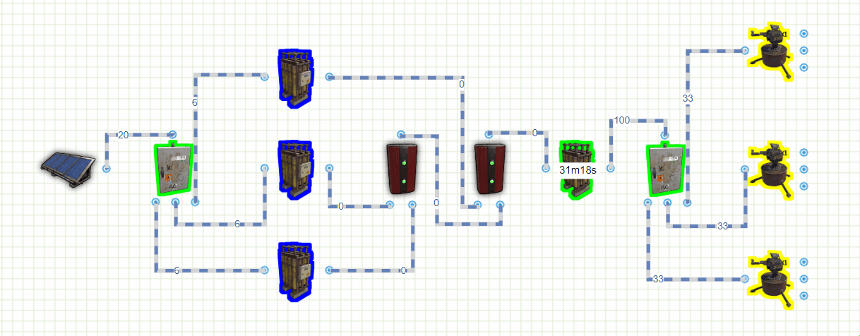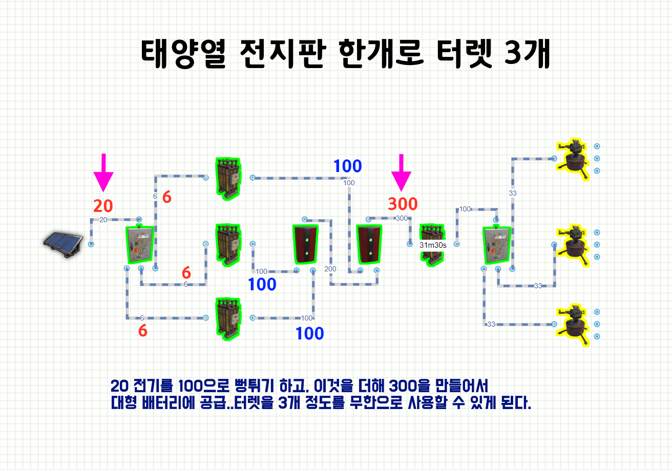 [러스트 전기회로] 태양열 발전기 하나로 터렛 8개 사용하기